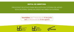 EDITAL DE ABERTURA EaD UFGD Nº 3 DE 09 DE JULHO DE 2024 – PROCESSO SELETIVO PARA BOLSISTA EM TUTORIA DE APOIO EDUCACIONAL ESPECIALIZADO NA ÁREA DA SURDEZ