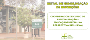 (REF. AO EDITAL DE ABERTURA EAD Nº 01 DE 22 DE JANEIRO DE 2024 – PROCESSOSELETIVO PARA COORDENADOR DE CURSO DE ESPECIALIZAÇÃO – EDUCAÇÃOESPECIAL NA PERSPECTIVA INCLUSIVA) https://editais.ufgd.edu.br/arquivo-download/2523116/EDITAL_DE_HOMOLOGAO_N_01_DE_07_DE_JANEIRO_DE_2024_-_COORDENADOR_DE_CURSO_ESPE.pdf