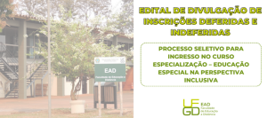 PROCESSO SELETIVO PARA INGRESSO NO CURSO ESPECIALIZAÇÃO – EDUCAÇÃO ESPECIAL NA PERSPECTIVA INCLUSIVA https://editais.ufgd.edu.br/arquivo-download/2522347/EDITAL_DE_DEFERIMENTO_DE_INSCRIES_EaD_N_01_DE_05_DE_MARO_-_PROCESSO_SELETIVO.pdf