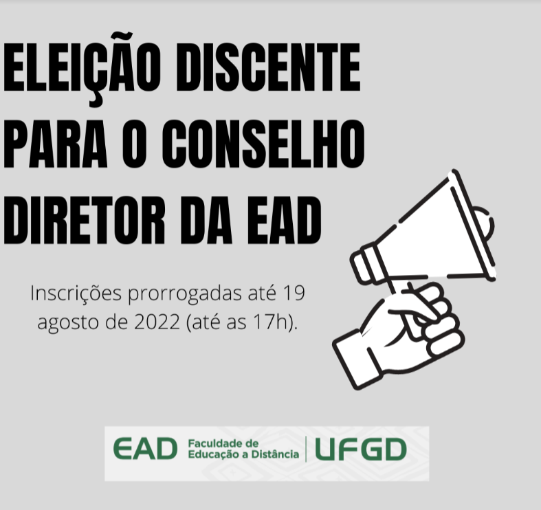 Informamos que foi prorrogado o período de inscrições para eleição de representantes discentes do Conselho Diretor da EaD.