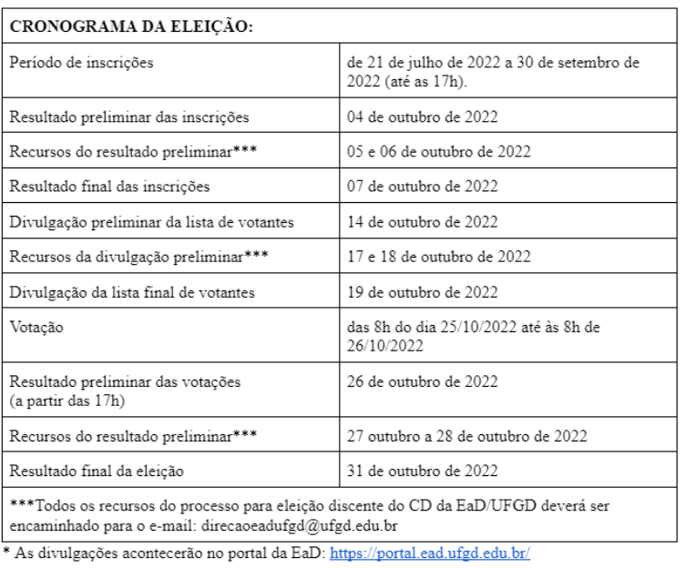 InícioNotíciasResultado preliminar das votações para eleição de representantes discentes para o Conselho Diretor da EaD Resultado preliminar das votações para eleição de representantes discentes para o Conselho Diretor da EaD Publicado em 26 de outubro de 2022